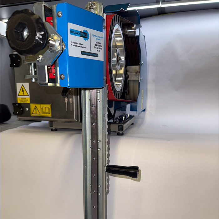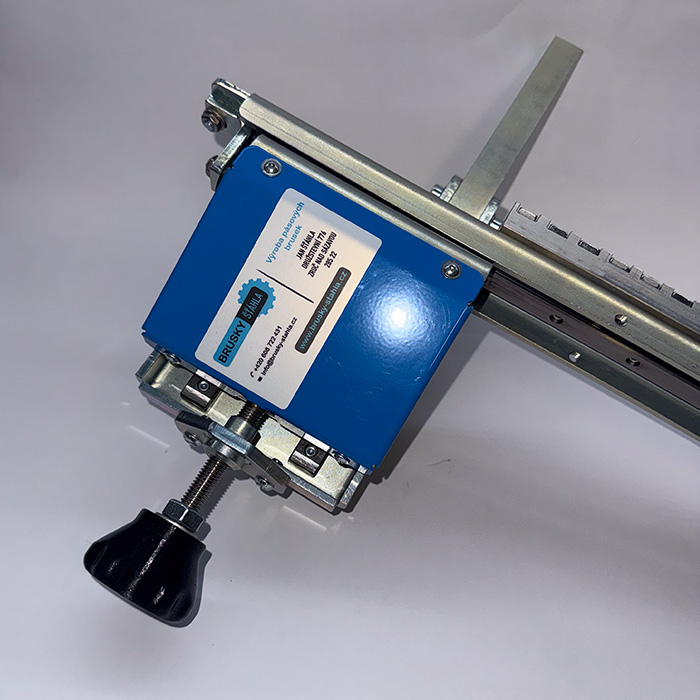 Lineární magnetická bruska slouží k rovinnému broušení ploch. Pro její použití je zapotřebí kontaktní kolo o průměru 150 nebo 200 mm. Přípravek je osazen lineárním vedením v obou osách. Magnetická hliníková deska je osazena neodymovými magnety a je úhlově stavitelná vůči kontaktnímu kolu +- 6°. Pokud máte již kontaktní kolo zakoupené není zapotřebí žádných úprav, přípravek se nasazuje do úchytu pro standardní stolek.